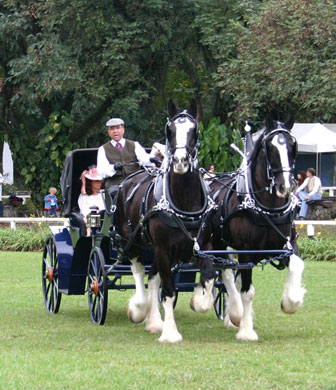 Clydesdale: Raça de tração originária da Inglaterra, o Clydesdale também conquistou a América, especialmente os Estados Unidos e Canadá, que já concentram as maiores criações mundiais da raça. O Clydesdale chega a pesar 1.200 kg, ultrapassando 1,80m de altura até a cernelha. Os animais necessitam de um arreamento feito sob medida e de forma personalizada.